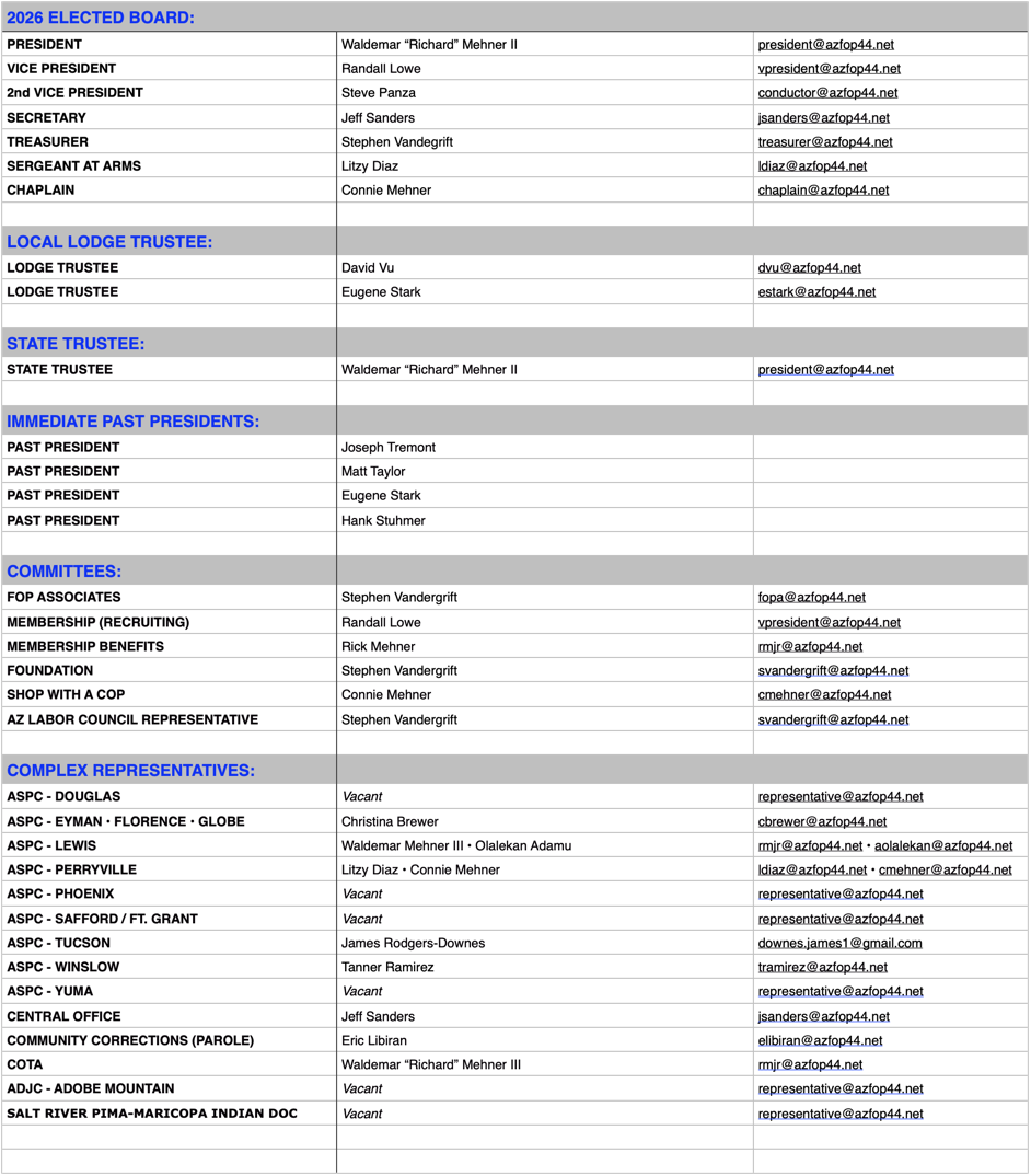 © 2016 Copyright Fraternal Order of Police, Lodge 44 for Corrections, Inc. • FOP & FOP Star are Copyrighted by National Fraternal Order of Police