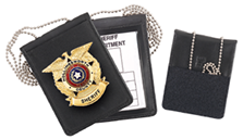 Model 603 laser cut badge carrier. Fits ADC Breast Badge Above. Recessed Badge and I.D. Holder. Designed for neck, belt or pocket. Unique pocket to store a chain.