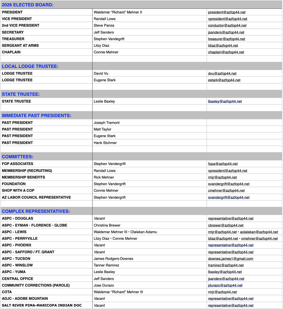 © 2016 Copyright Fraternal Order of Police, Lodge 44 for Corrections, Inc. • FOP & FOP Star are Copyrighted by National Fraternal Order of Police